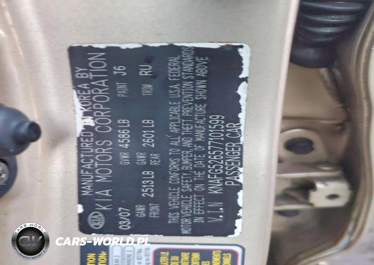 Copart Nr: C-45520386 VIN: KNAFG526577101599 Port: Elizabeth, NJ