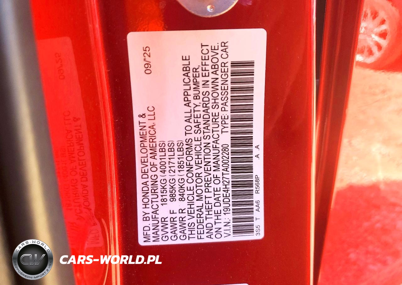 Copart Nr: C-45530876 VIN: 19UDE4H27TA002280 Port: Houston, TX