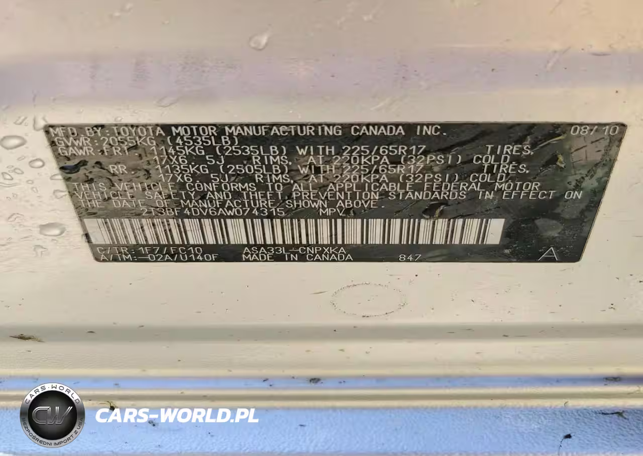 Copart Nr: C-45540346 VIN: 2T3BF4DV6AW074315 Port: Indianapolis, IN
