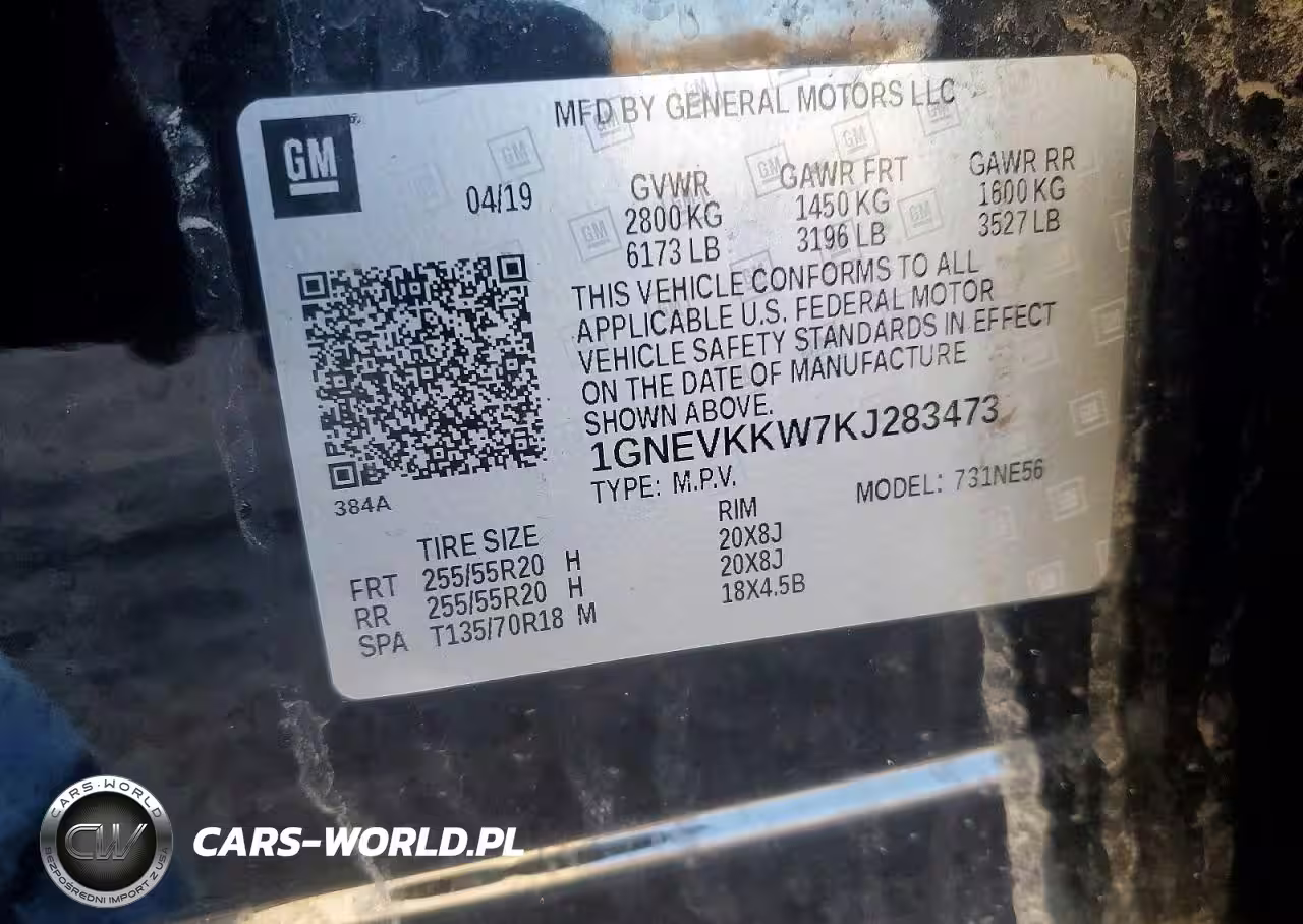Copart Nr: C-45544736 VIN: 1GNEVKKW7KJ283473 Port: Indianapolis, IN