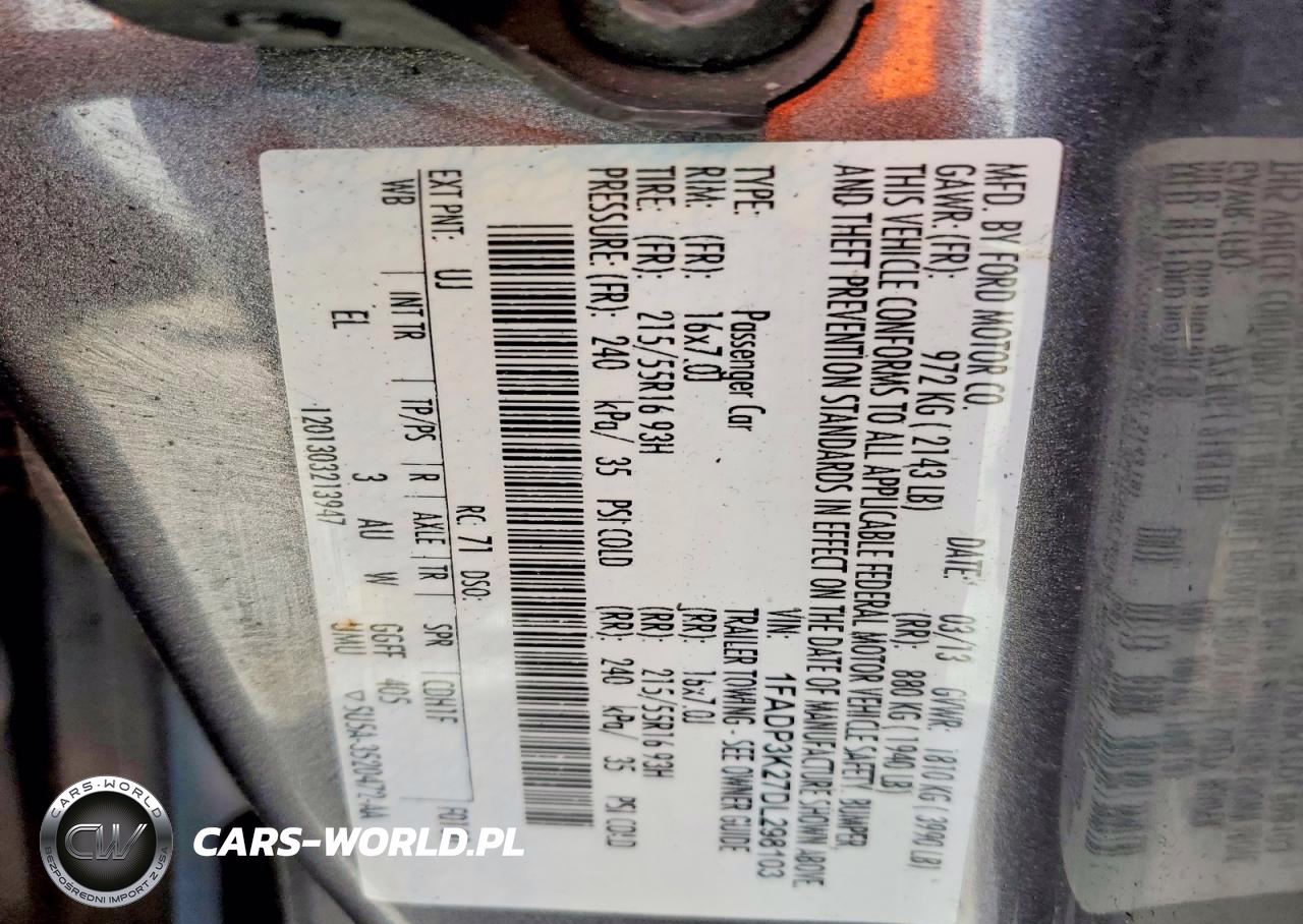 Copart Nr: C-45564336 VIN: 1FADP3K27DL298103 Port: Indianapolis, IN