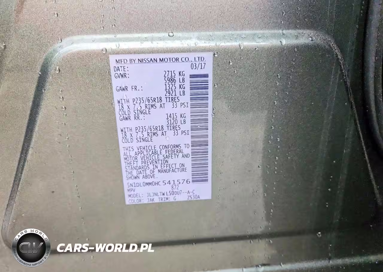 Copart Nr: C-45567786 VIN: 5N1DL0MM0HC541576 Port: Savannah, GA