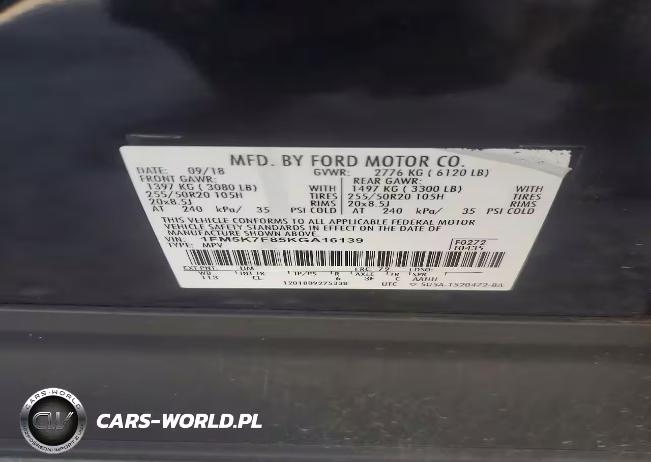 Copart Nr: C-45575036 VIN: 1FM5K7F85KGA16139 Port: Houston, TX