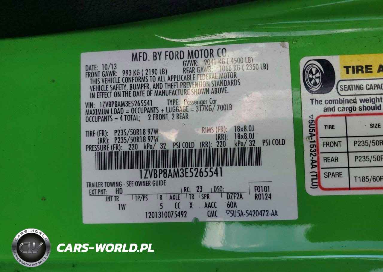 Copart Nr: C-45602986 VIN: 1ZVBP8AM3E5265541 Port: Savannah, GA