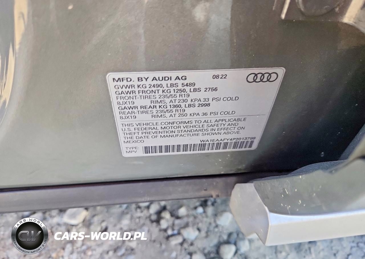 Copart Nr: C-45619276 VIN: WA1EAAFY4P2013798 Port: Savannah, GA