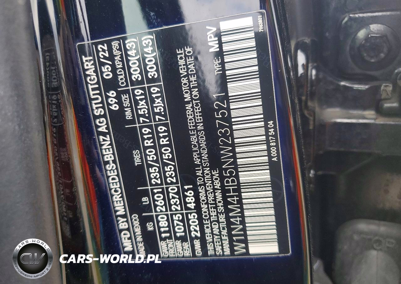 Copart Nr: C-45629706 VIN: W1N4M4HB5NW237521 Port: Indianapolis, IN