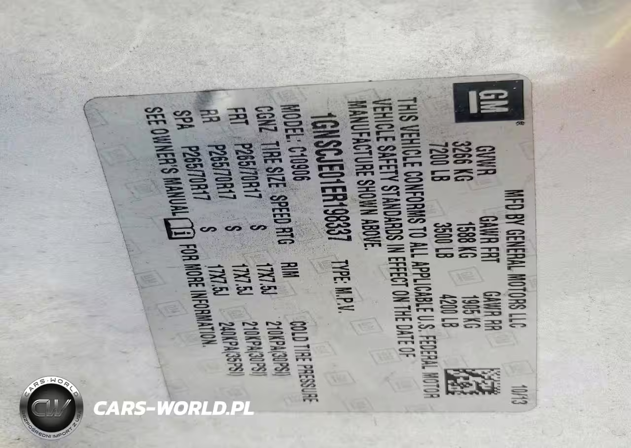 Copart Nr: C-45636646 VIN: 1GNSCJE01ER198337 Port: Savannah, GA