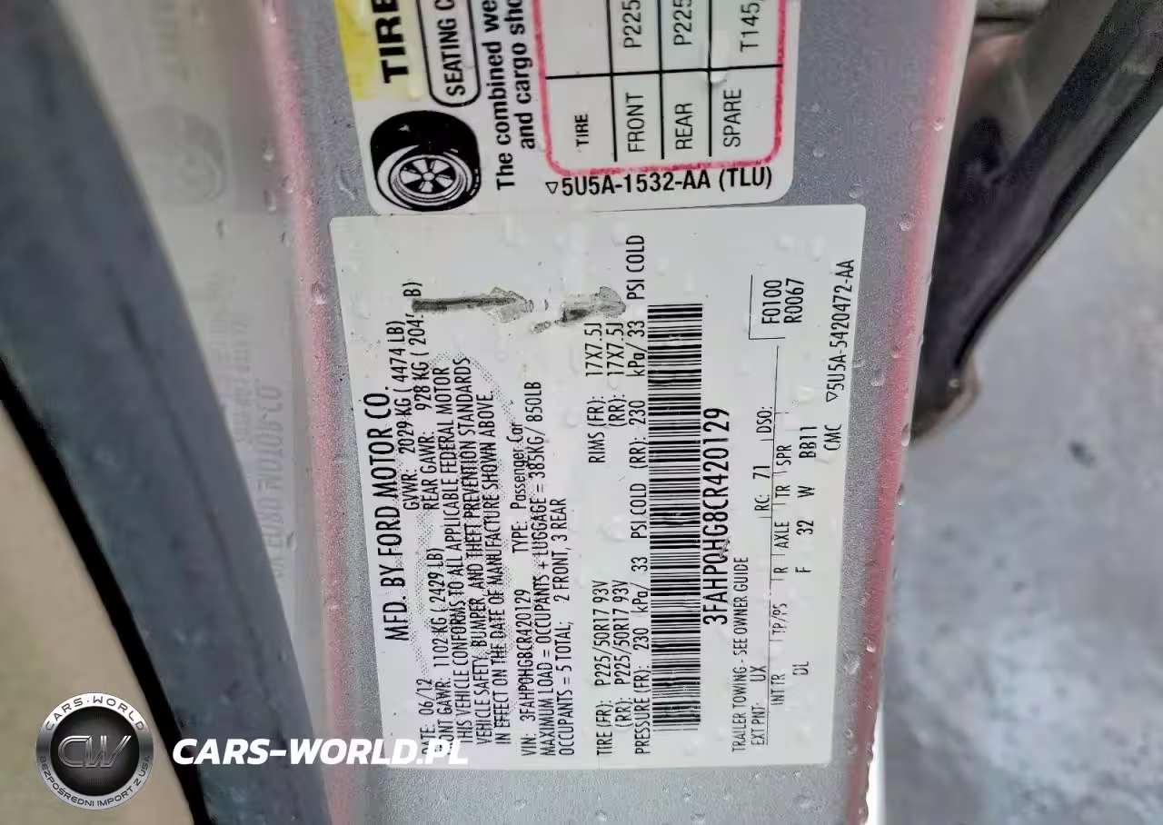 Copart Nr: C-45648436 VIN: 3FAHP0HG8CR420129 Port: Elizabeth, NJ