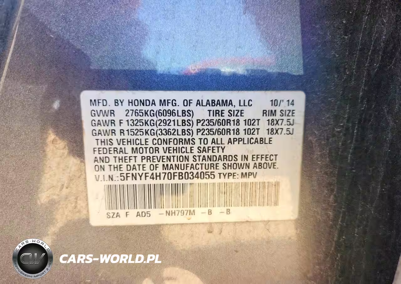 Copart Nr: C-45657586 VIN: 5FNYF4H70FB034055 Port: Savannah, GA