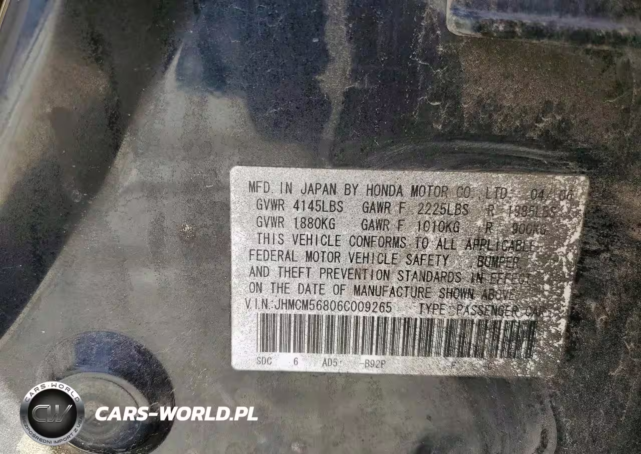 Copart Nr: C-45679466 VIN: JHMCM56806C009265 Port: Houston, TX