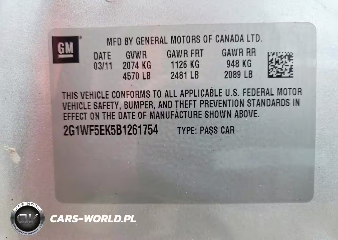 Copart Nr: C-45695176 VIN: 2G1WF5EK5B1261754 Port: Elizabeth, NJ