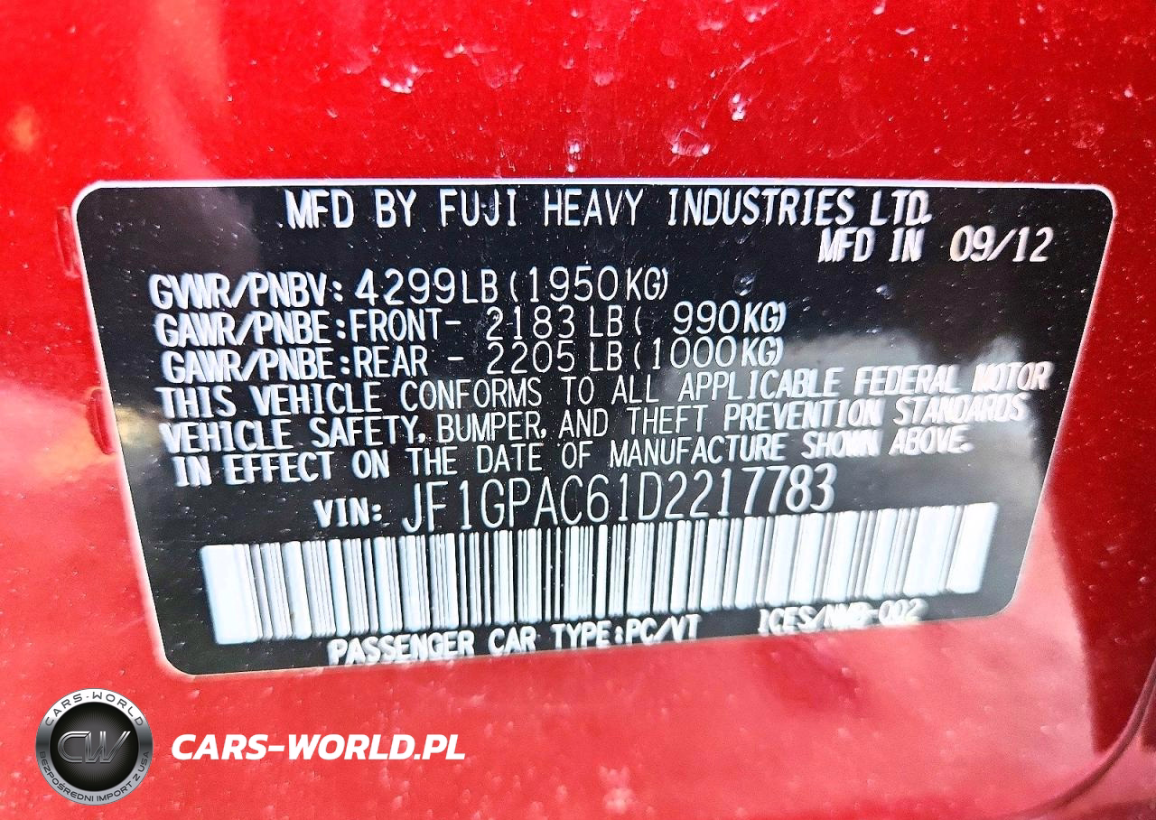 Copart Nr: C-45709826 VIN: JF1GPAC61D2217783 Port: Elizabeth, NJ