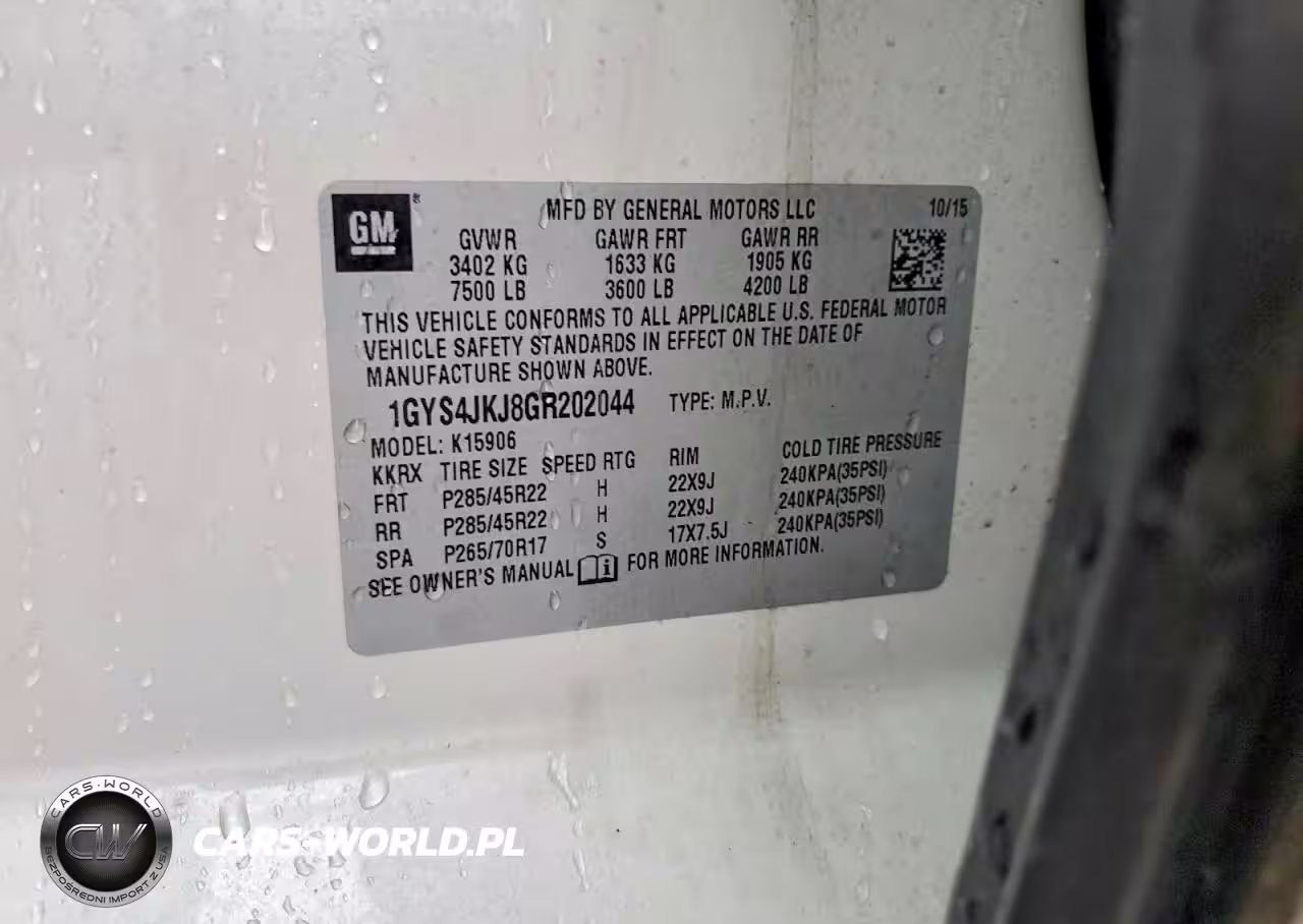 Copart Nr: C-45779806 VIN: 1GYS4JKJ8GR202044 Port: Los Angeles, CA