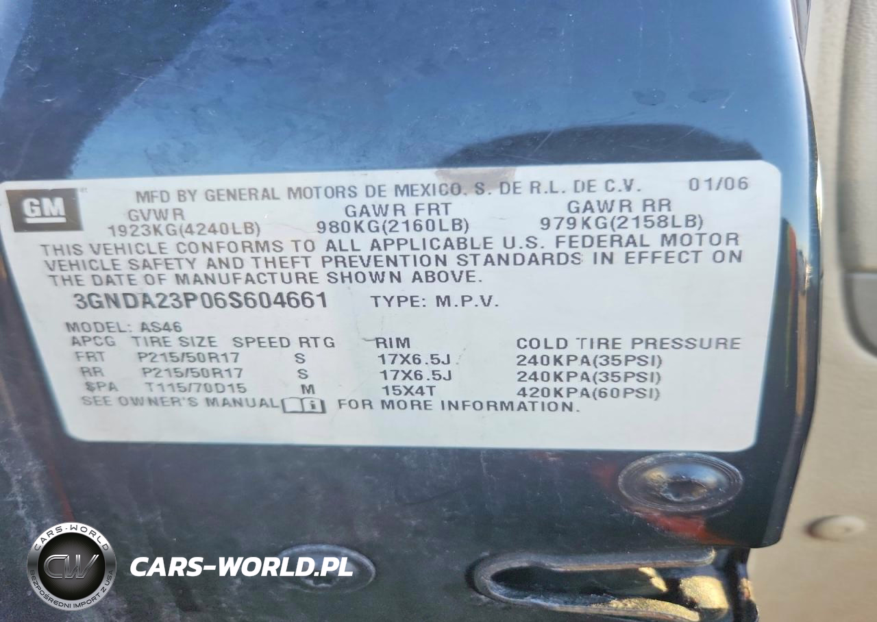 Copart Nr: C-45794106 VIN: 3GNDA23P06S604661 Port: Indianapolis, IN