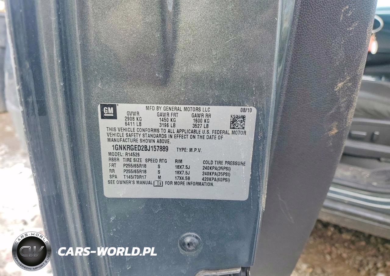 Copart Nr: C-45816356 VIN: 1GNKRGED2BJ157889 Port: Elizabeth, NJ