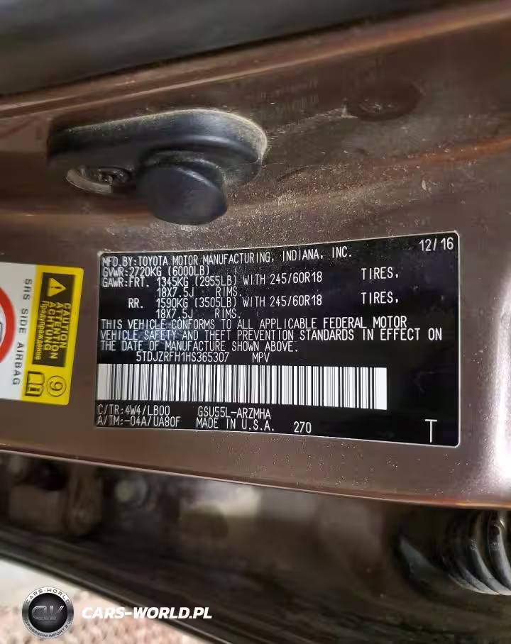 Copart Nr: C-45835716 VIN: 5TDJZRFH1HS365307 Port: Indianapolis, IN