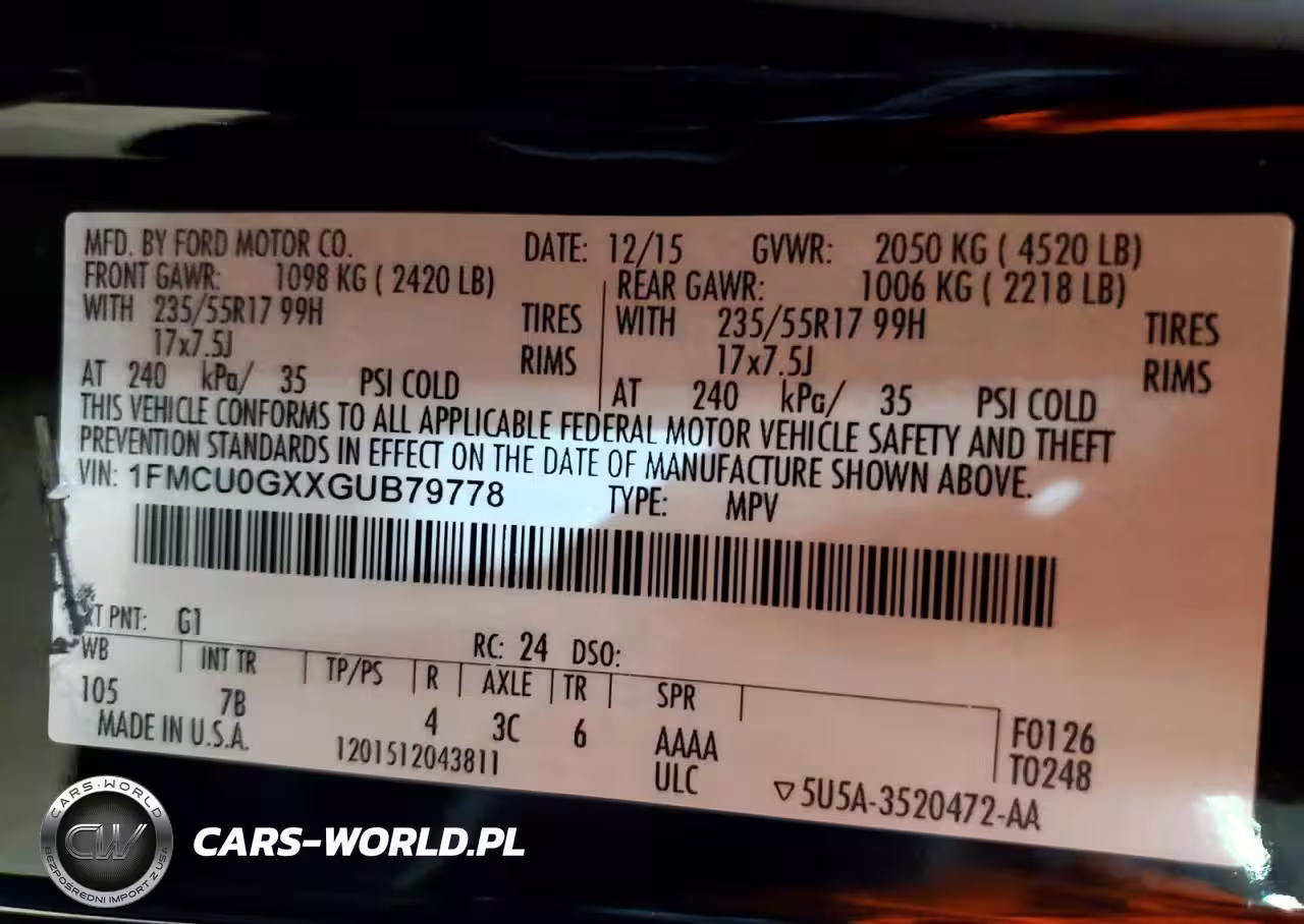 Copart Nr: C-45835906 VIN: 1FMCU0GXXGUB79778 Port: Elizabeth, NJ