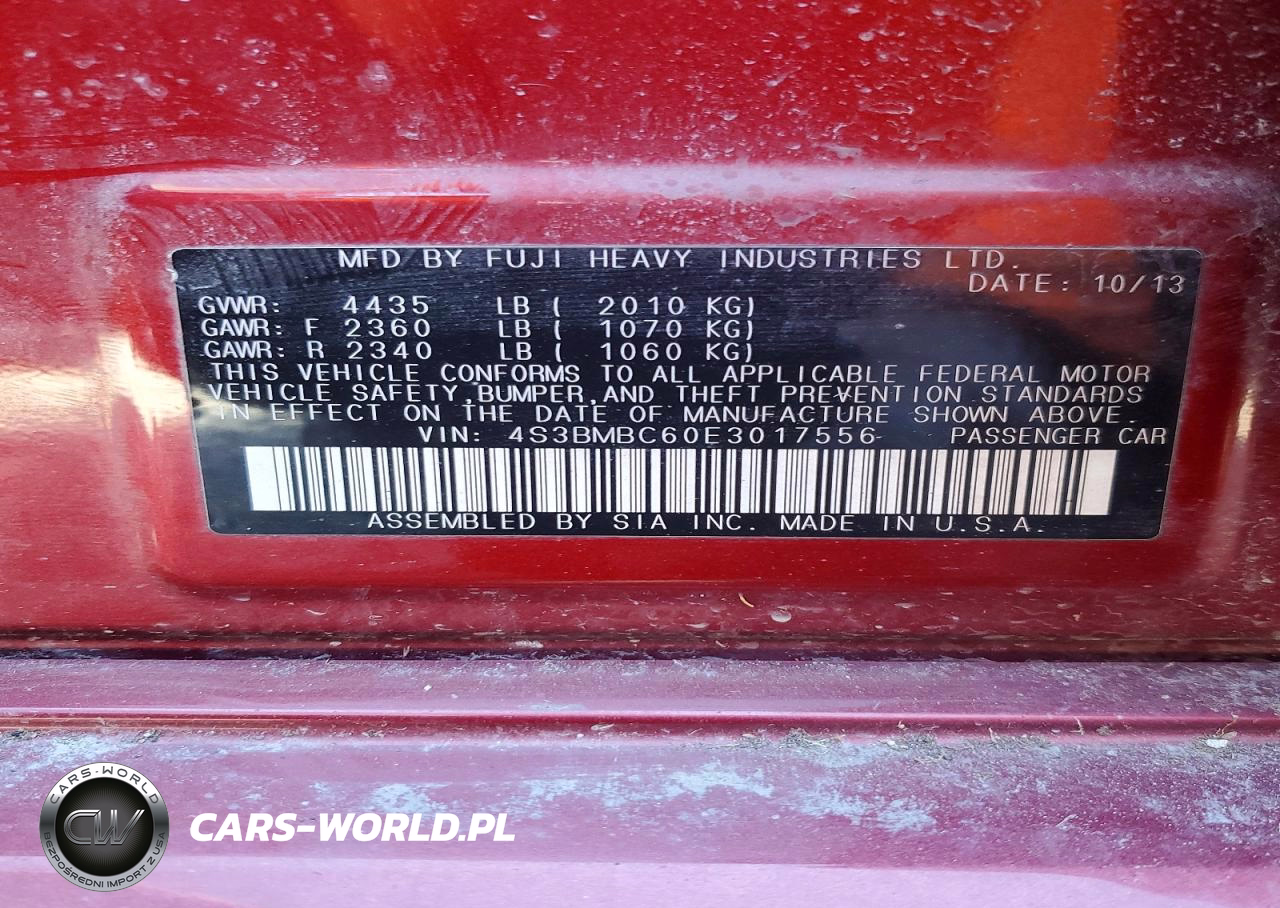 Copart Nr: C-45846066 VIN: 4S3BMBC60E3017556 Port: Elizabeth, NJ