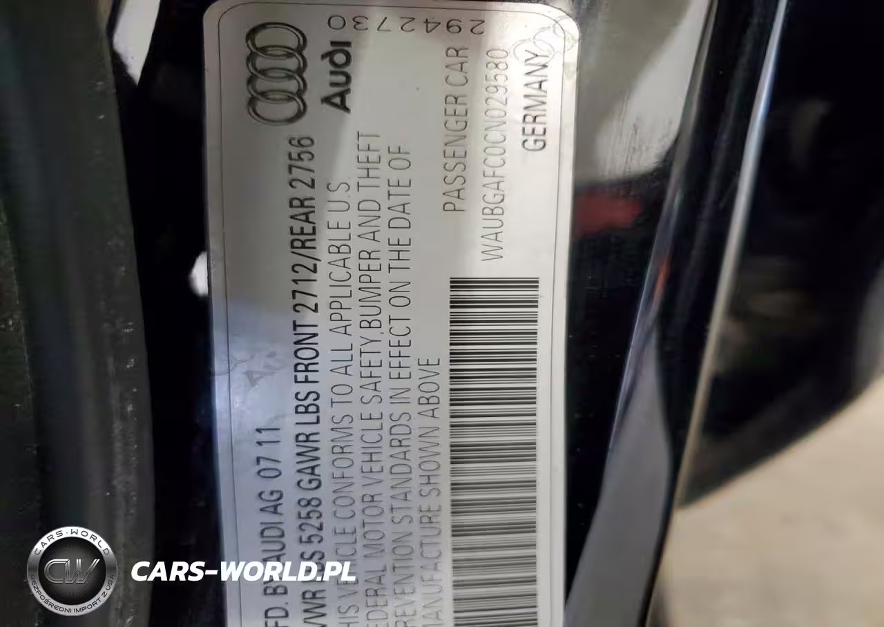 Copart Nr: C-45868446 VIN: WAUBGAFC0CN029580 Port: Indianapolis, IN