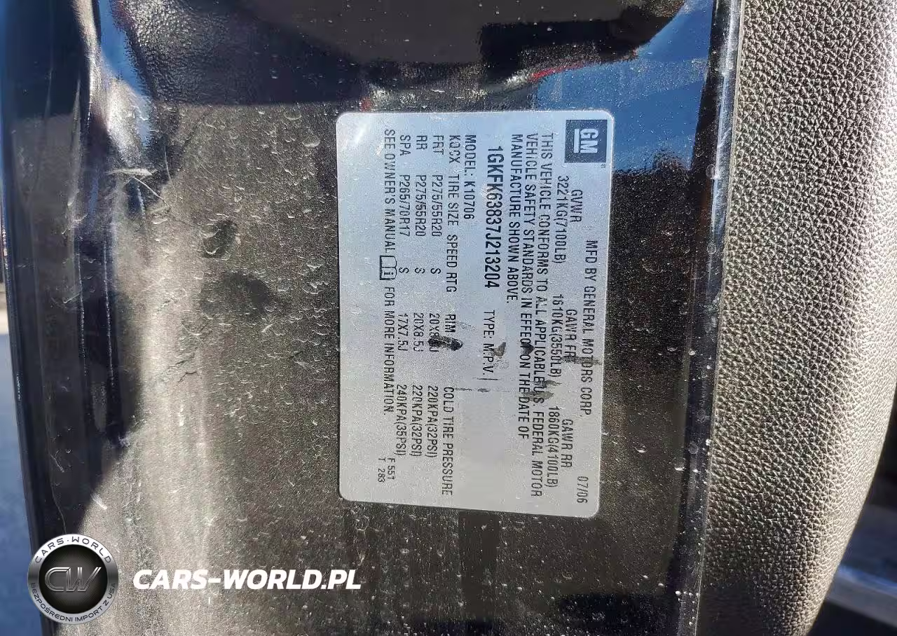Copart Nr: C-45877366 VIN: 1GKFK63837J213204 Port: Los Angeles, CA