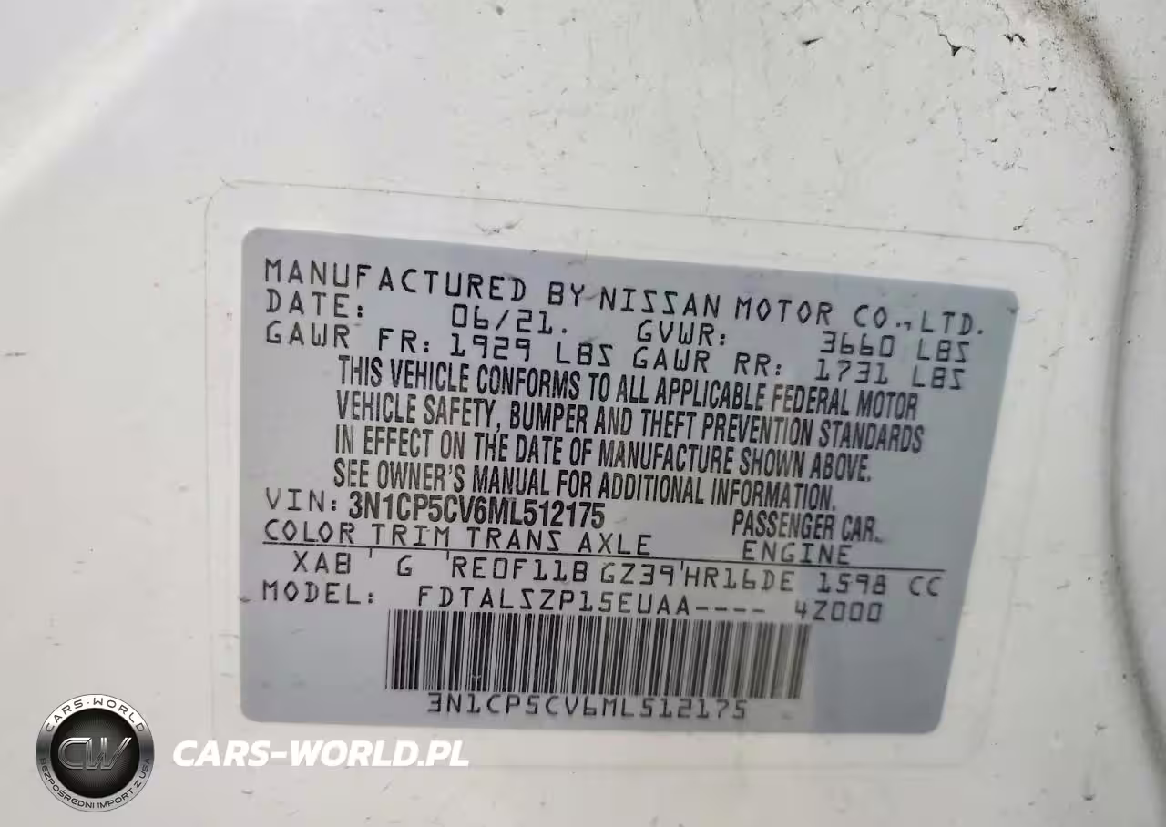 Copart Nr: C-45880856 VIN: 3N1CP5CV6ML512175 Port: Indianapolis, IN