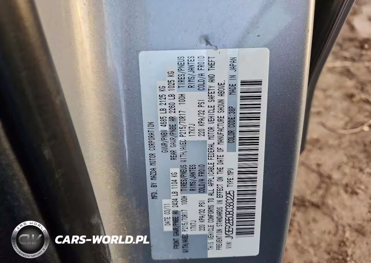 Copart Nr: C-45884826 VIN: JM3ER2B50B0380225 Port: Indianapolis, IN