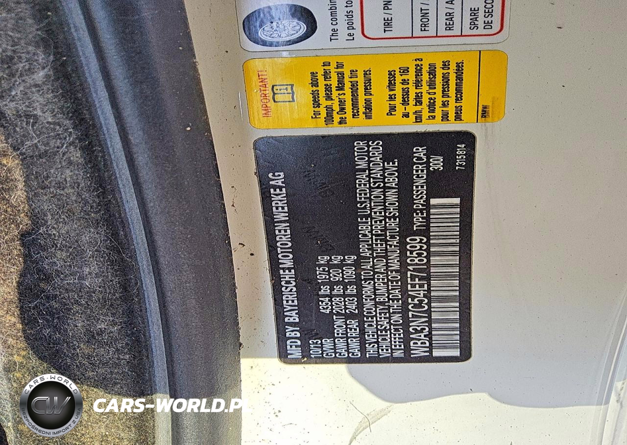 Copart Nr: C-45927376 VIN: WBA3N7C54EF718599 Port: Los Angeles, CA