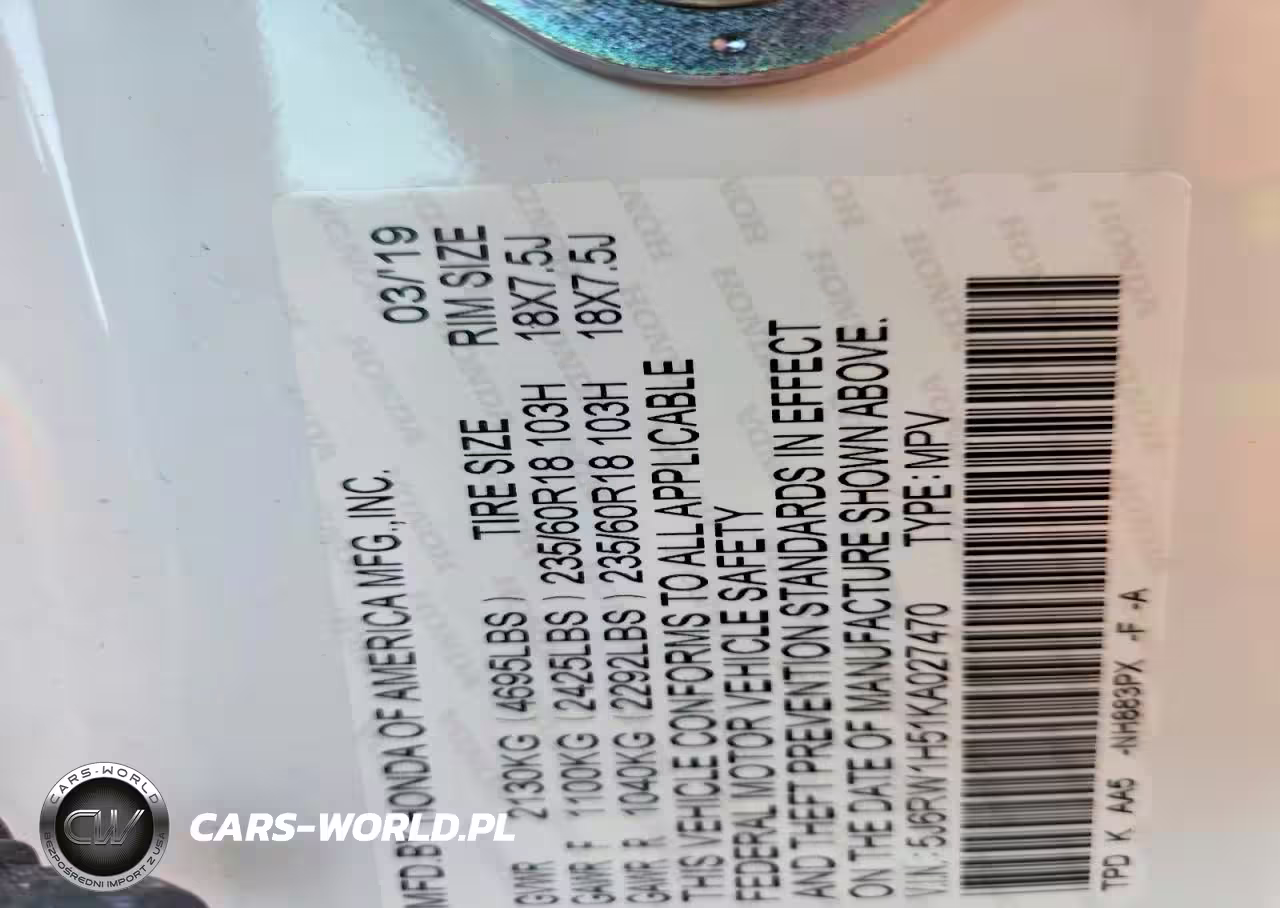 Copart Nr: C-45935606 VIN: 5J6RW1H51KA027470 Port: Houston, TX
