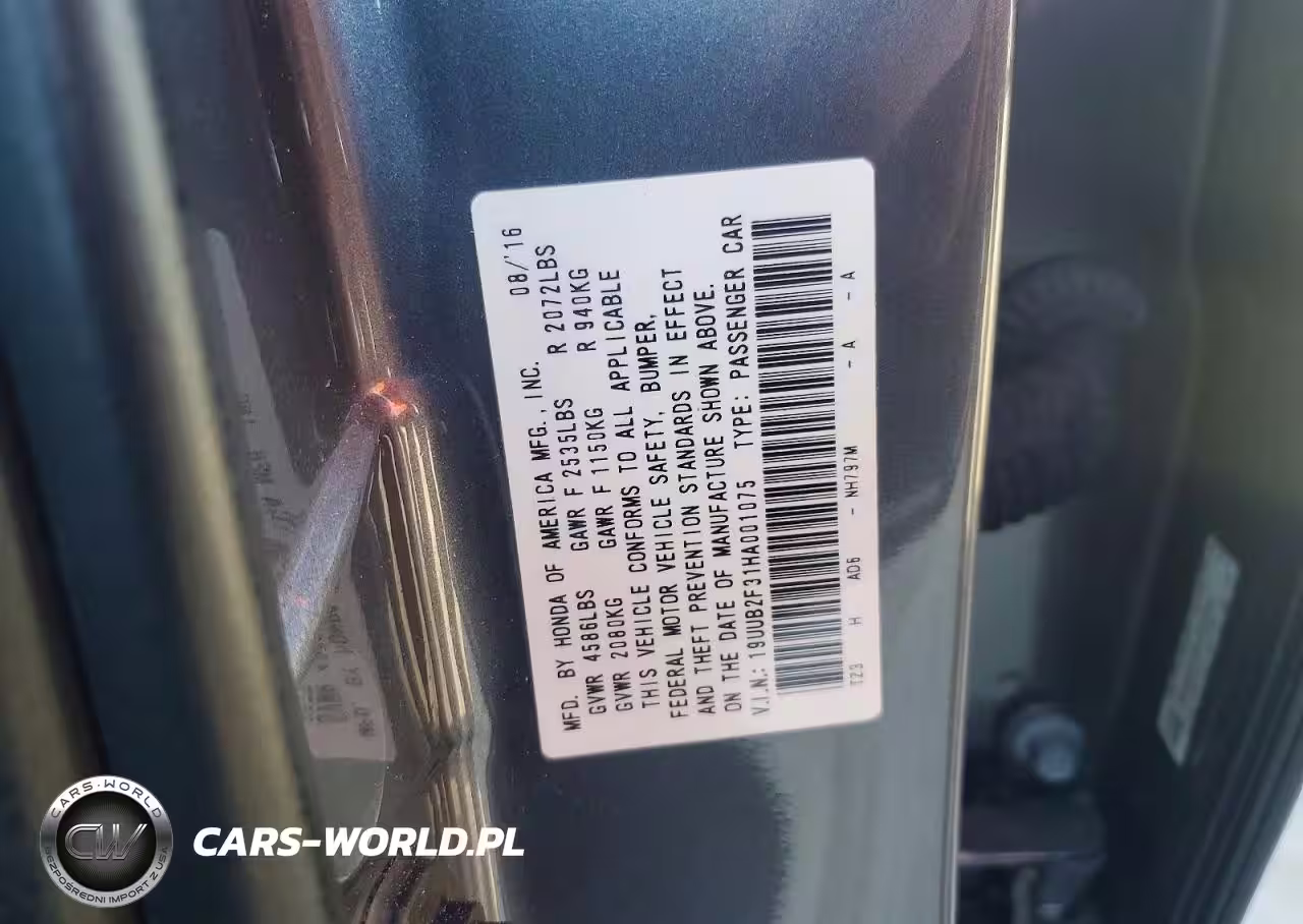 Copart Nr: C-45939476 VIN: 19UUB2F31HA001075 Port: Houston, TX