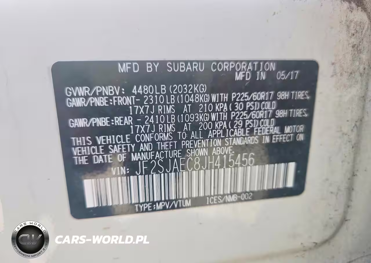 Copart Nr: C-45945166 VIN: JF2SJAEC8JH415456 Port: Houston, TX