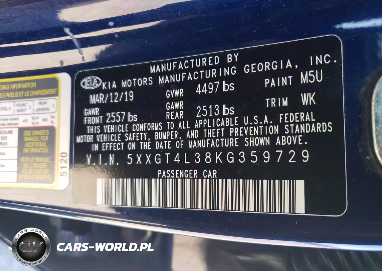 Copart Nr: C-45964526 VIN: 5XXGT4L38KG359729 Port: Savannah, GA