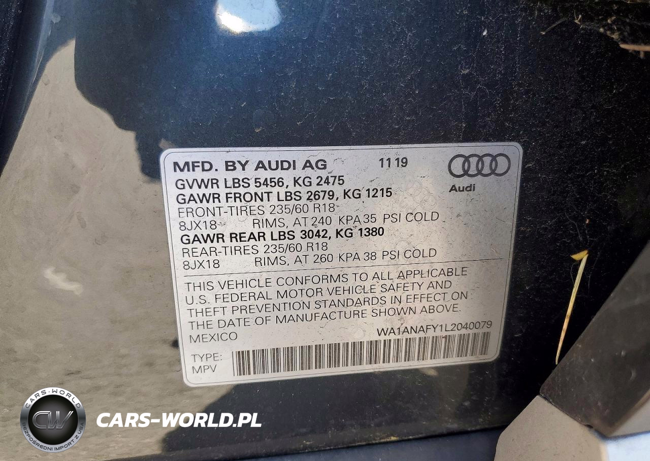Copart Nr: C-45973106 VIN: WA1ANAFY1L2040079 Port: Los Angeles, CA