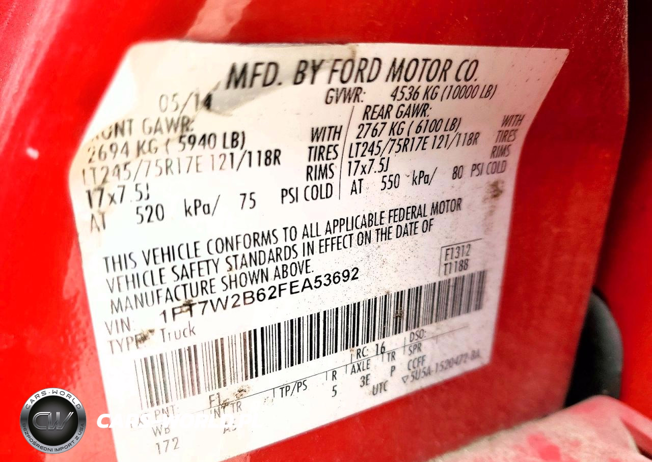 Copart Nr: C-45977206 VIN: 1FT7W2B62FEA53692 Port: Elizabeth, NJ
