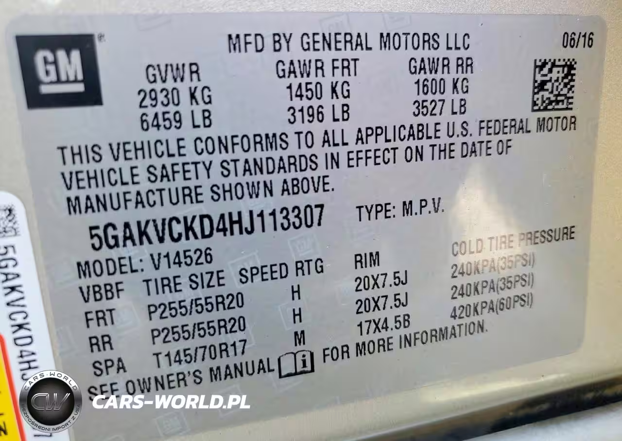 Copart Nr: C-46001896 VIN: 5GAKVCKD4HJ113307 Port: Elizabeth, NJ