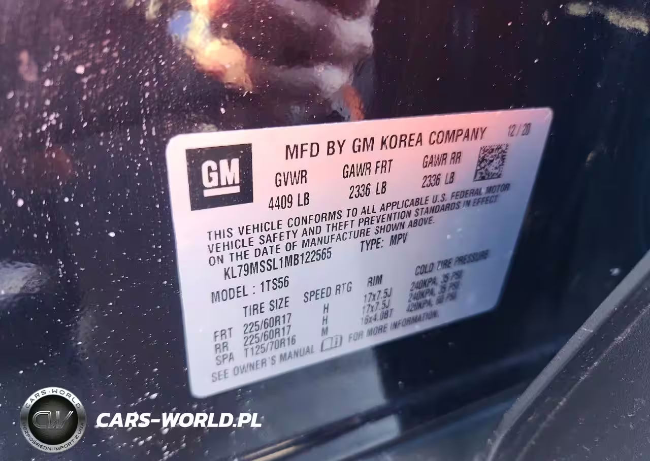 Copart Nr: C-46007166 VIN: KL79MSSL1MB122565 Port: Elizabeth, NJ