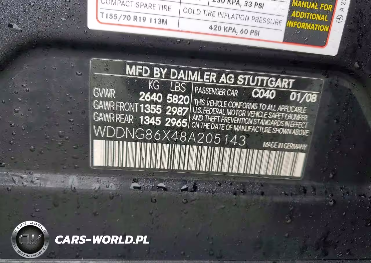 Copart Nr: C-46009286 VIN: WDDNG86X48A205143 Port: Elizabeth, NJ
