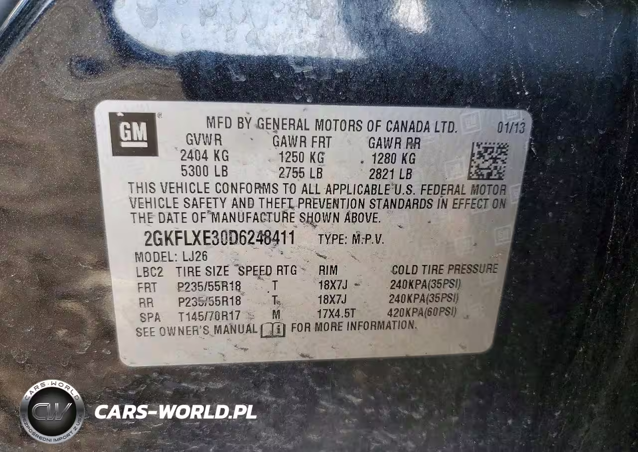 Copart Nr: C-46018976 VIN: 2GKFLXE30D6248411 Port: Indianapolis, IN