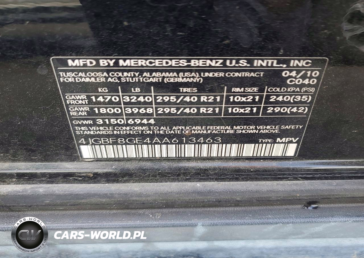 Copart Nr: C-46024176 VIN: 4JGBF8GE4AA613463 Port: Savannah, GA