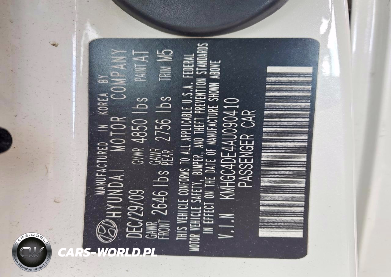 Copart Nr: C-46037606 VIN: KMHGC4DE4AU090410 Port: Elizabeth, NJ