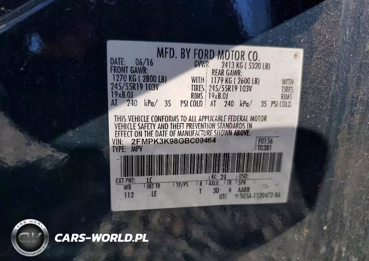 Copart Nr: C-46044416 VIN: 2FMPK3K98GBC09464 Port: Savannah, GA