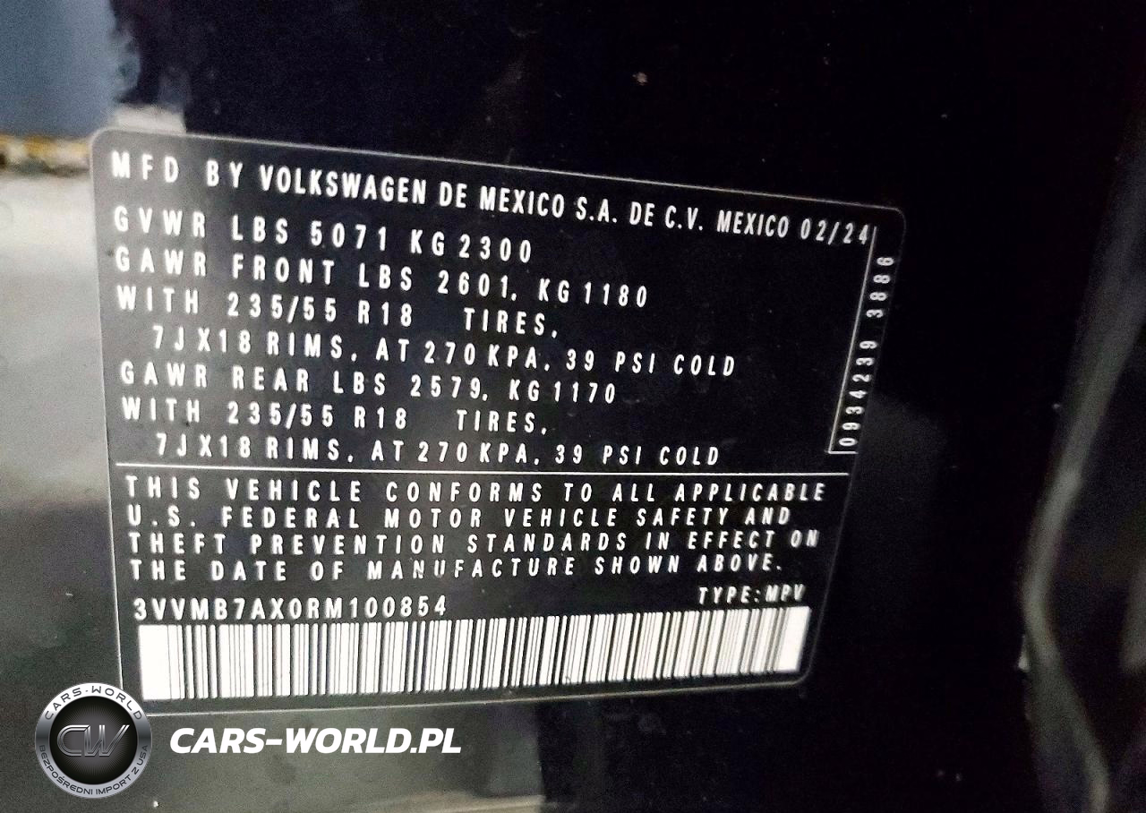 Copart Nr: C-46047226 VIN: 3VVMB7AX0RM100854 Port: Elizabeth, NJ