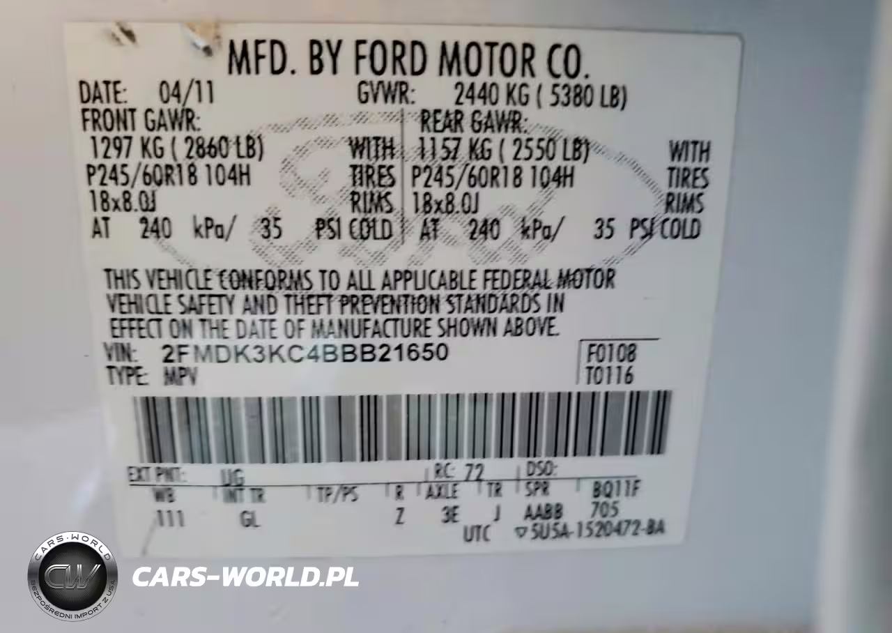Copart Nr: C-46050006 VIN: 2FMDK3KC4BBB21650 Port: Los Angeles, CA