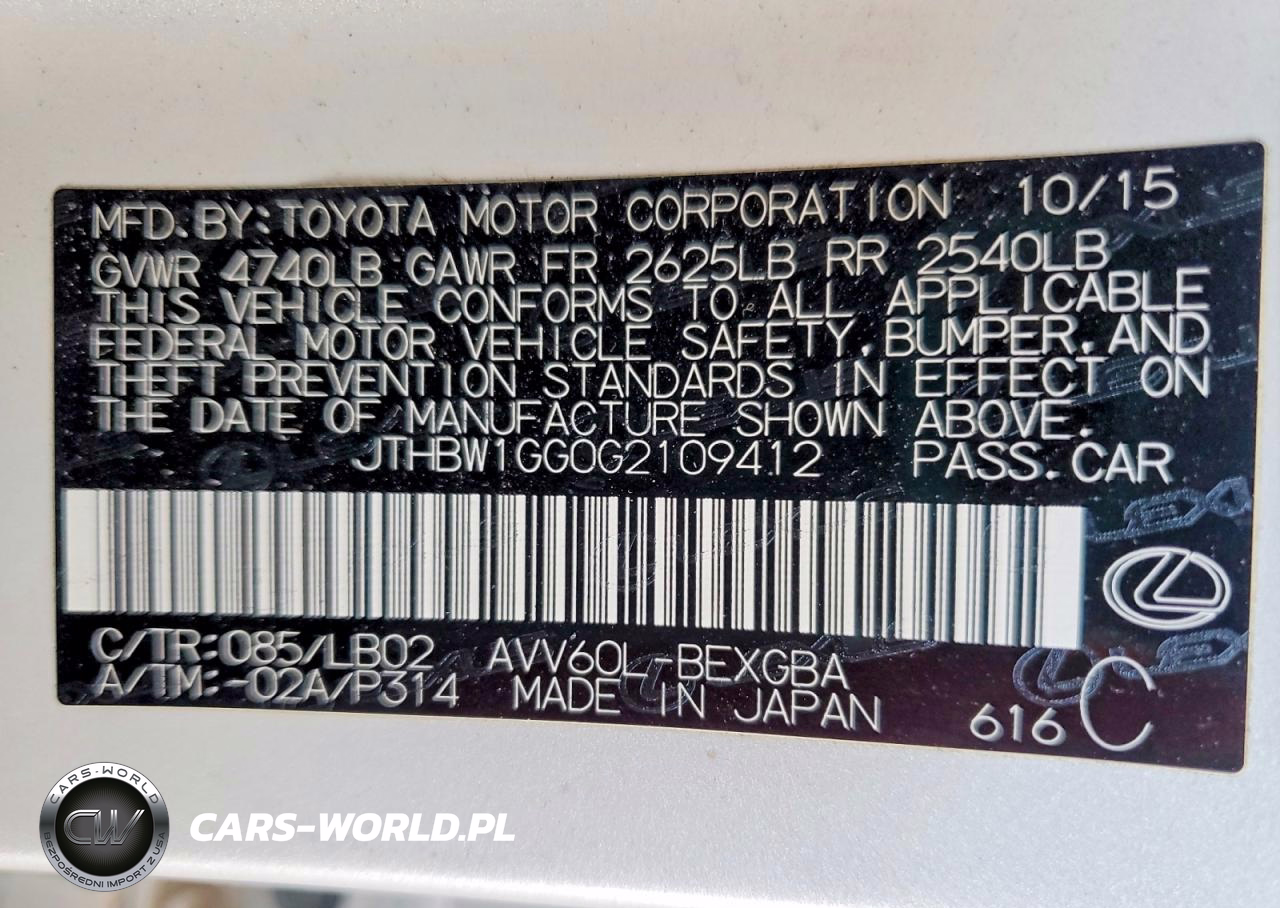 Copart Nr: C-46058726 VIN: JTHBW1GG0G2109412 Port: Los Angeles, CA