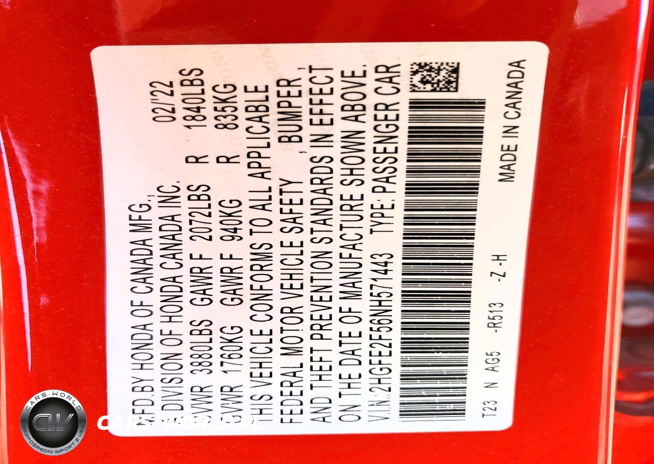 Copart Nr: C-46123906 VIN: 2HGFE2F56NH571443 Port: Savannah, GA