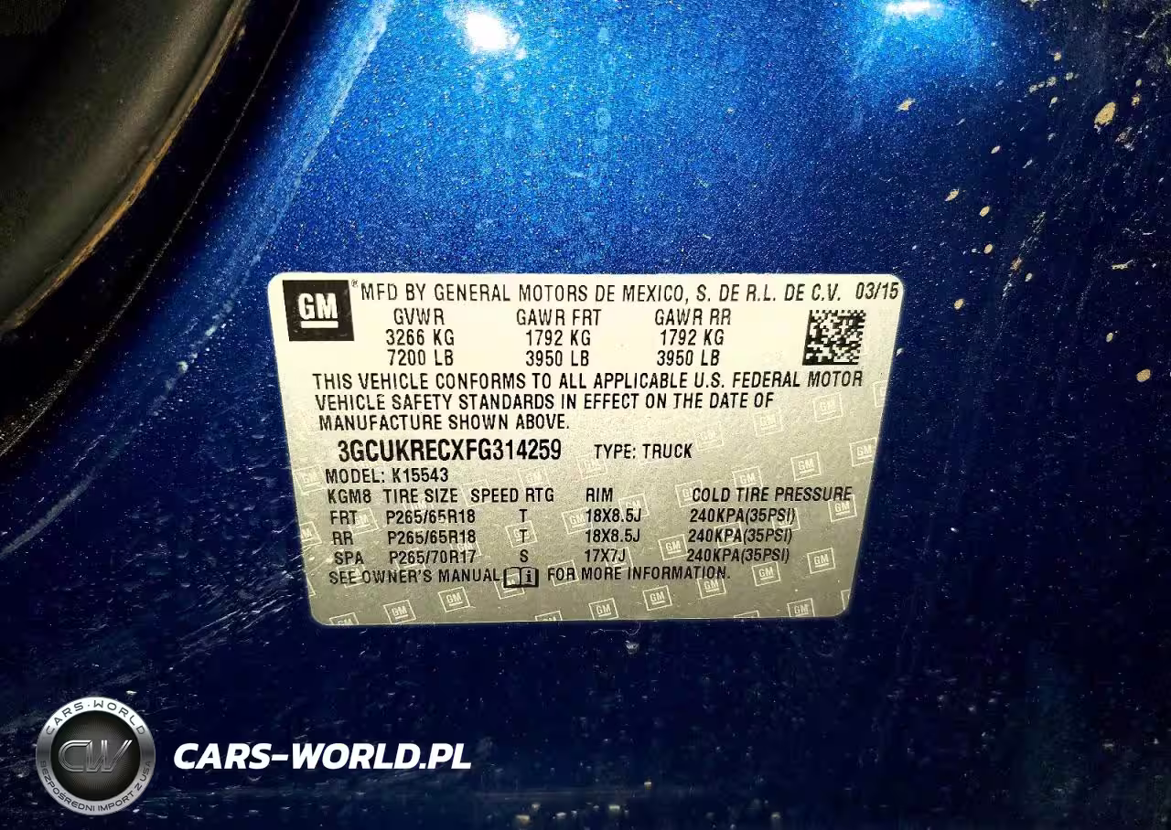 Copart Nr: C-46128176 VIN: 3GCUKRECXFG314259 Port: Indianapolis, IN