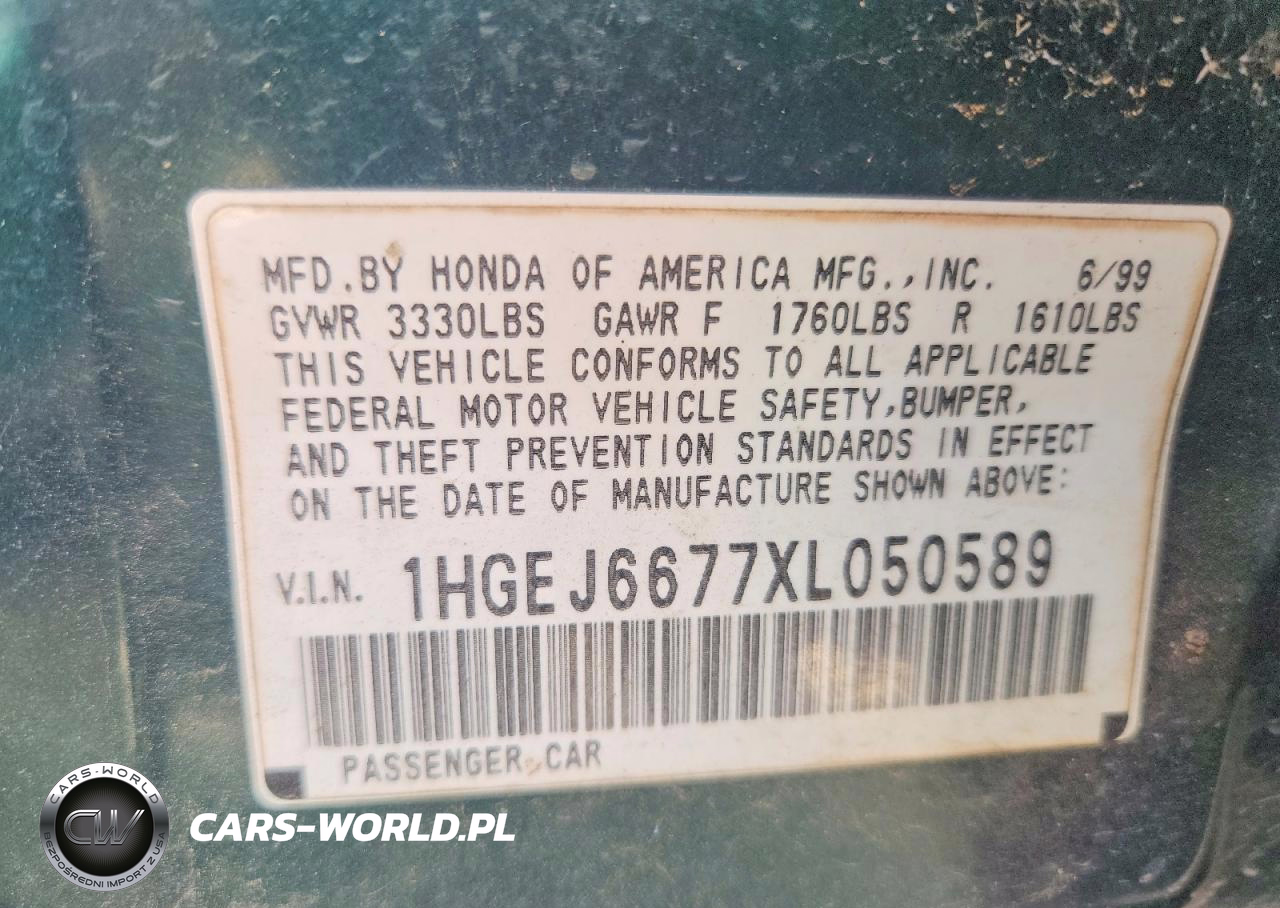 Copart Nr: C-46141926 VIN: 1HGEJ6677XL050589 Port: Houston, TX