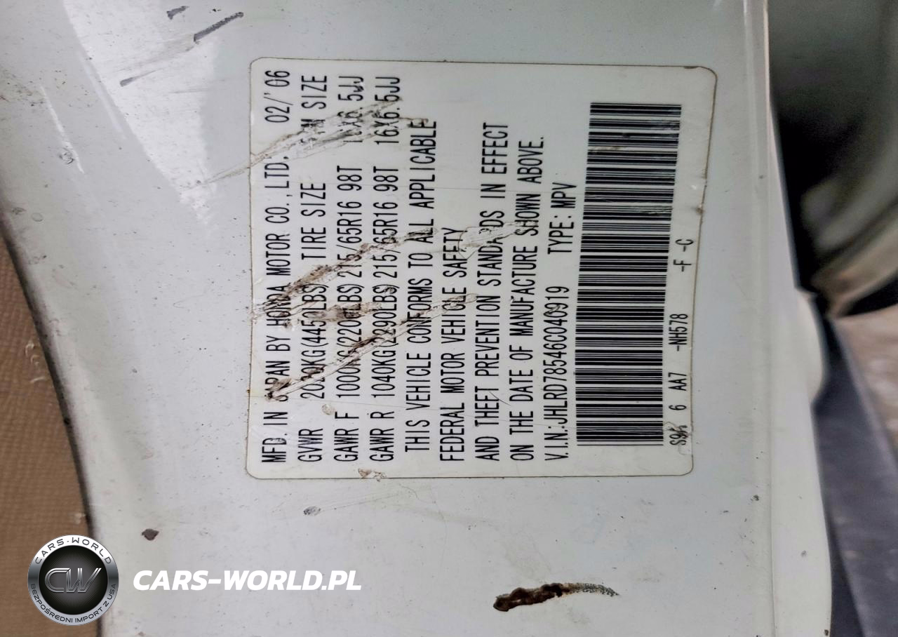 Copart Nr: C-46149026 VIN: JHLRD78546C040919 Port: Houston, TX