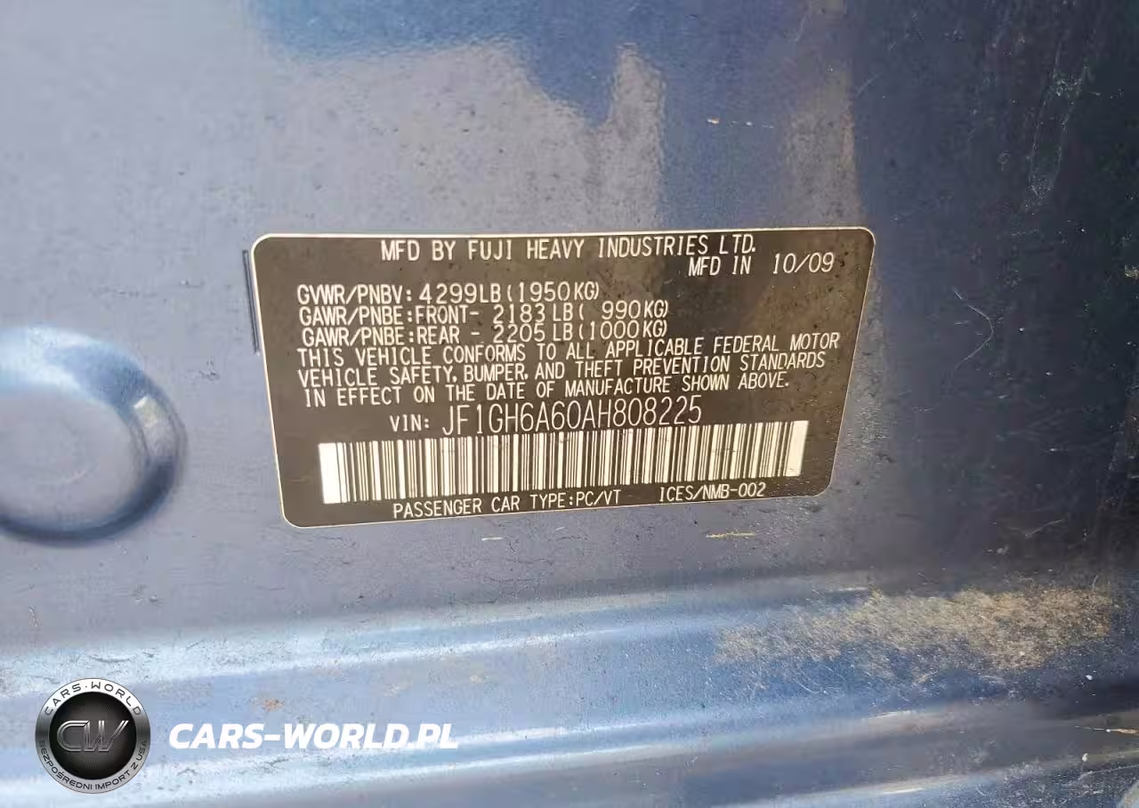 Copart Nr: C-46150296 VIN: JF1GH6A60AH808225 Port: Elizabeth, NJ