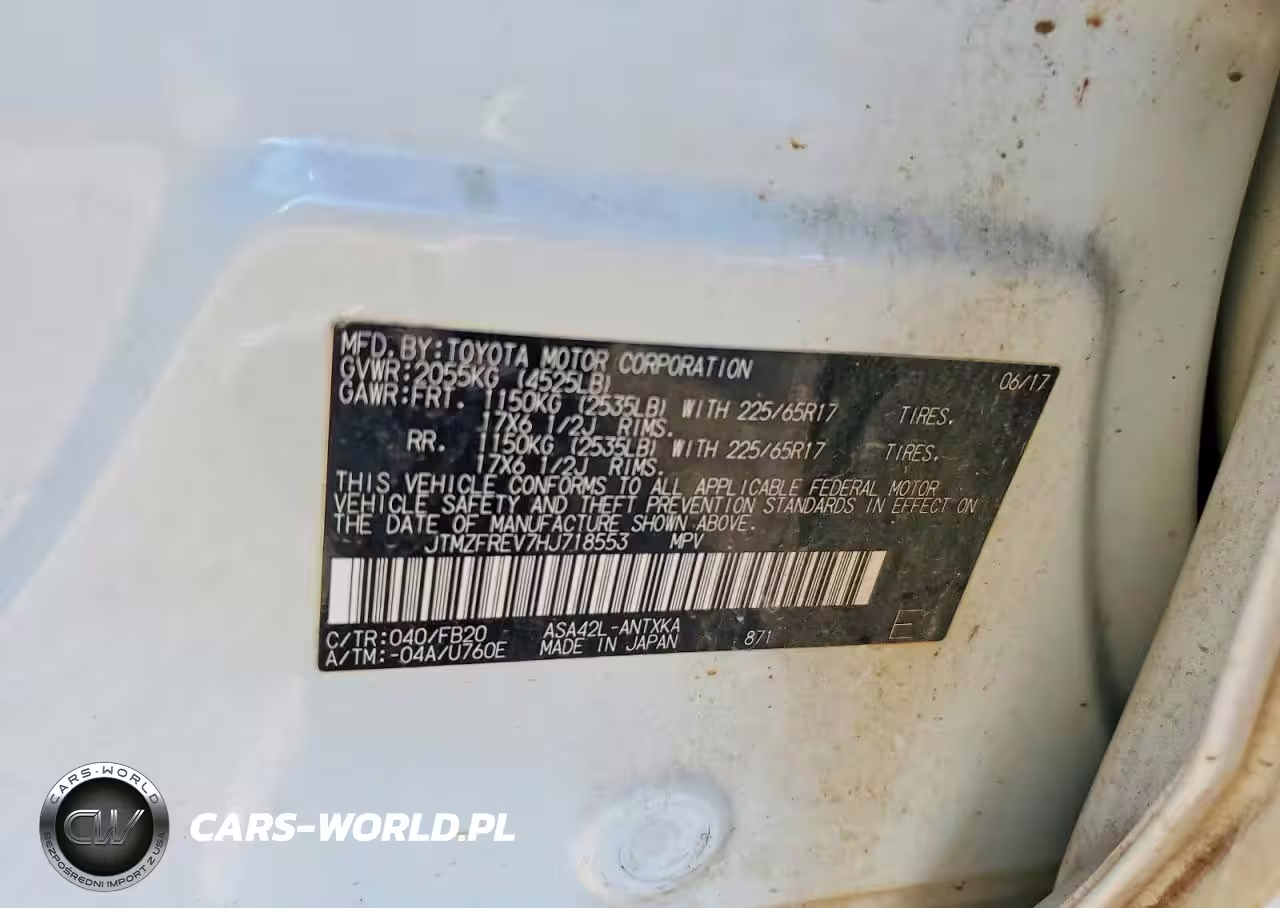 Copart Nr: C-46165856 VIN: JTMZFREV7HJ718553 Port: Savannah, GA