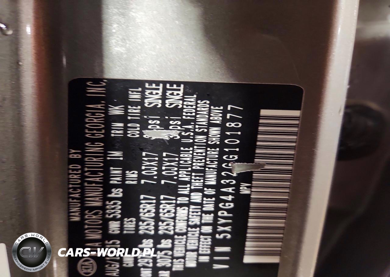 Copart Nr: C-46171246 VIN: 5XYPG4A32GG101877 Port: Indianapolis, IN